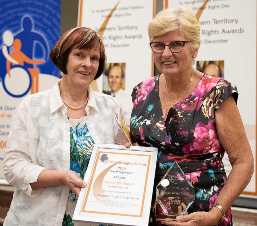 The Variety NT Starfish Swim Group was recognised for their work with children with disability in winning the Human Rights “Fitzgerald” Awards in the Social Change category. This was a huge win for Variety and Starfish and received enormous praise at the presentation night at the Supreme Court on Tuesday 10th December. The awards recognised that the program promotes equal opportunity and non-discriminatory attitudes and practices by never rejecting an application to join the program based on a child’s disability, race, gender, culture or social status.